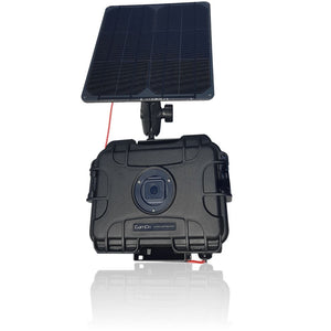 Our Solar Enclosures use a 9 Watt solar panel to recharge the included V50 battery. If your installation is in a particularly cloudy or rainy area we also have an 18W upgrade option for additional peace of mind.